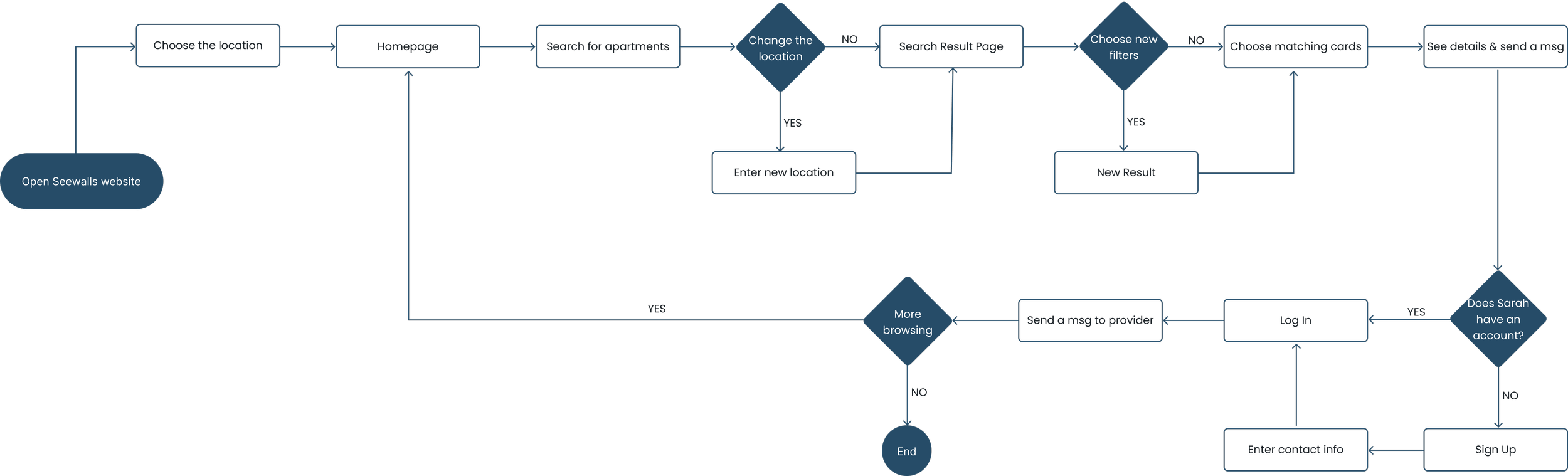 The user flow was crafted based on the process of renting an apartment in a specific location, tailored to accommodate user preferences through effective filtering.