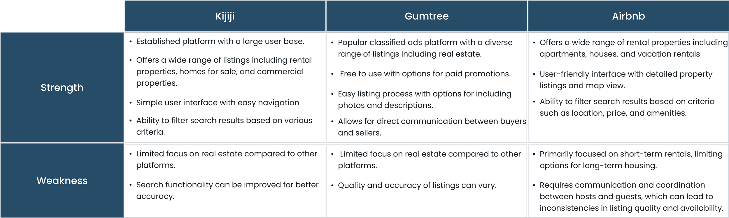 We carried out a competitive analysis to understand the diverse functionalities and operational approaches of various classified ad websites. This involved examining different sections of these websites, including consistency, various filters, user interface, and more.
